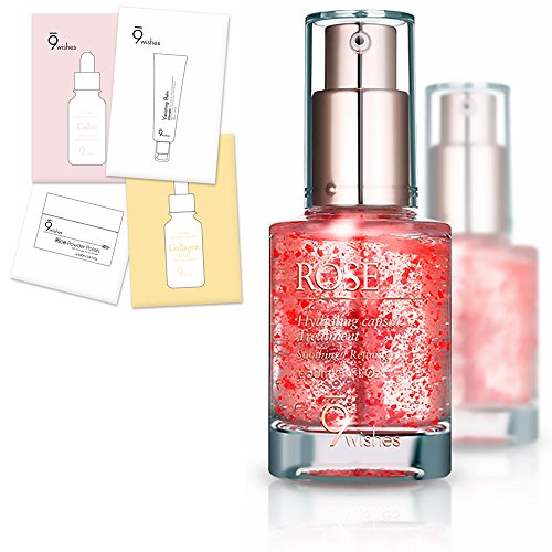-. Feature : 9 WISHES MEANS : PH Balance, Moisturizing, Layers, Temperature, Pore, Cleanliness, Dead skin cell, Immunity, Elasticity / NO HARMFUL CHEMICALS : Only the best natural ingredients with perfect balance in all 9wishes products. / REAL ROSE? : Vegetable rose oil capsule ingredients are included. / TEST COMPLETED : Human stimulation test (Skin Research Center) complete for skin adverse reaction 0% / SAMPLES: 4 Sample pouches will be provided.