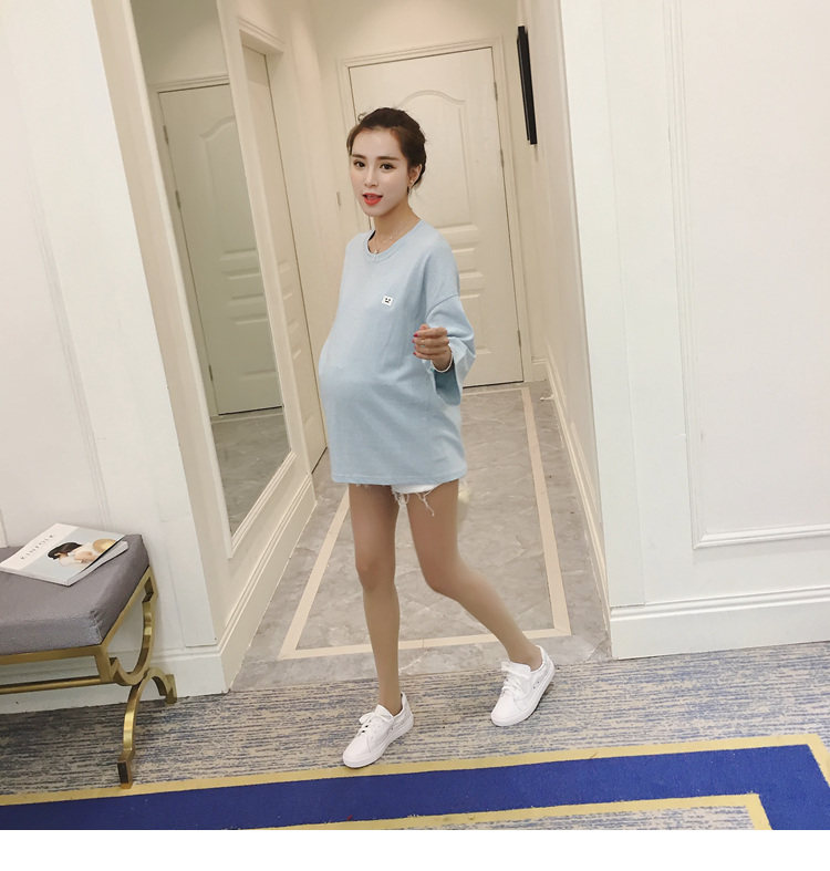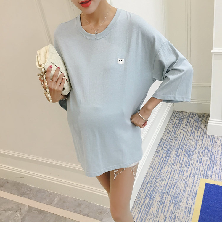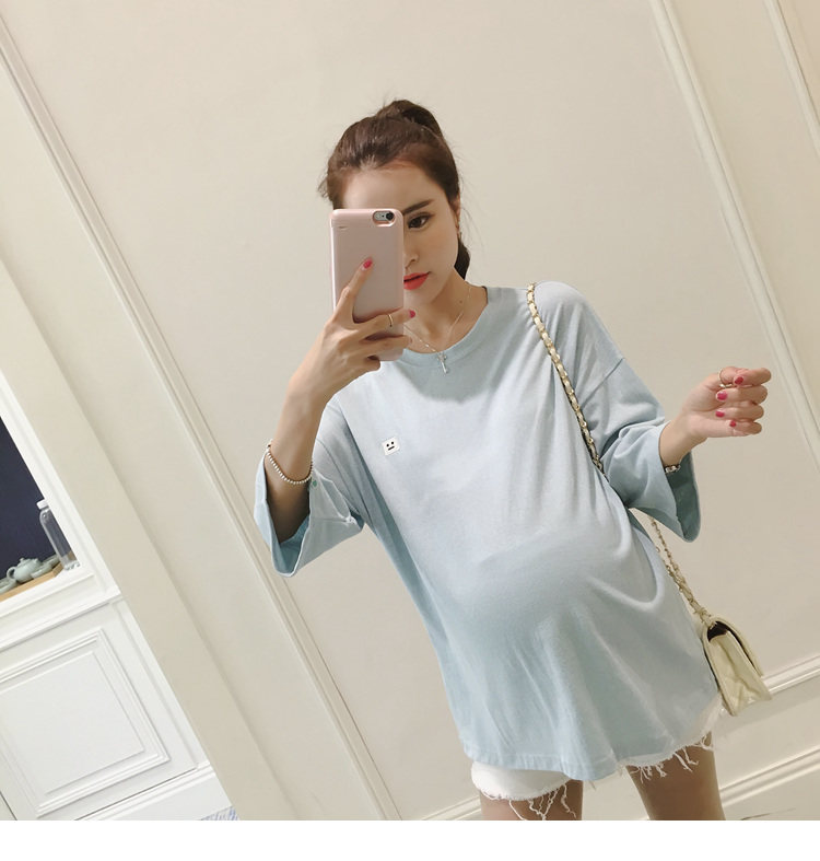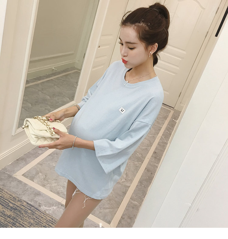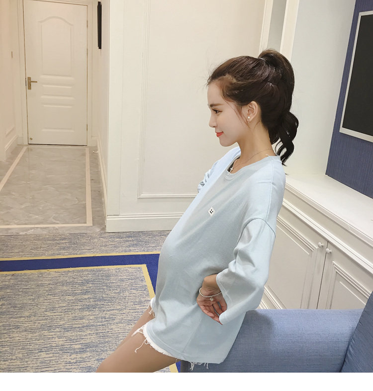 孕妇打底衫上衣 纯色宽松七分袖T恤韩版春秋孕妇装新款圆领体恤潮