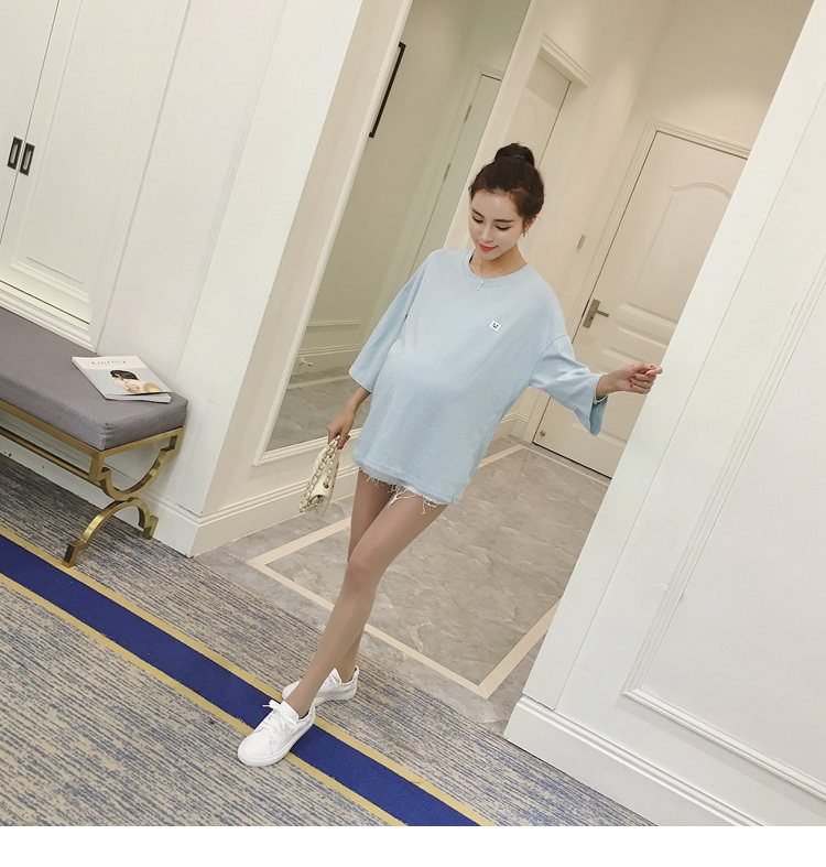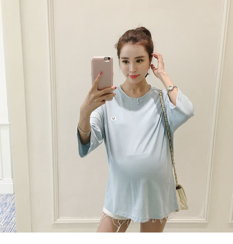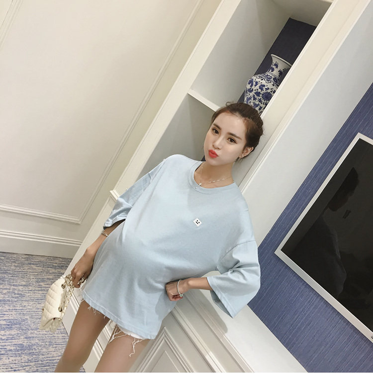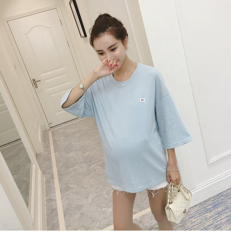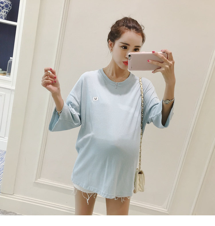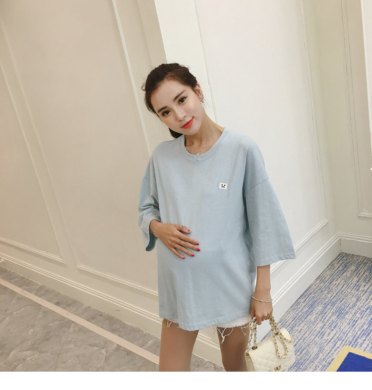 孕妇打底衫上衣 纯色宽松七分袖T恤韩版春秋孕妇装新款圆领体恤潮