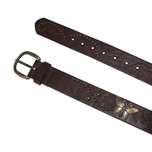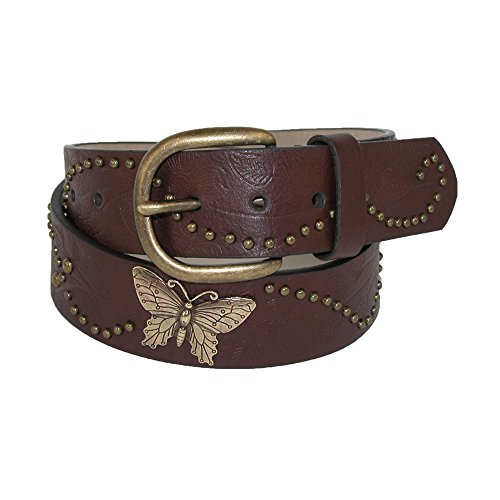 -. Feature : Sizes: S(22"-24"), M(26"-28"), L(30"-32") / Made of faux and genuine leathers / Silver-tone studs and butterfly conchos accent center of pink belt