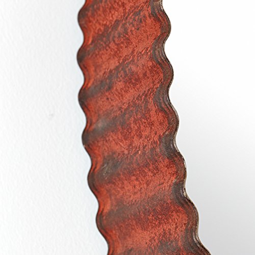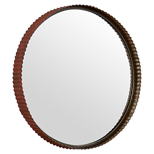This mirror is a handsome, functional piece of art. The iron frame has rust finish along with ridges and grooves like an old bottle cap, adding an industrial touch. Hang in a bedroom, hallway or over a fireplace mantel in a contemporary-style room.