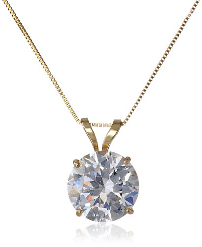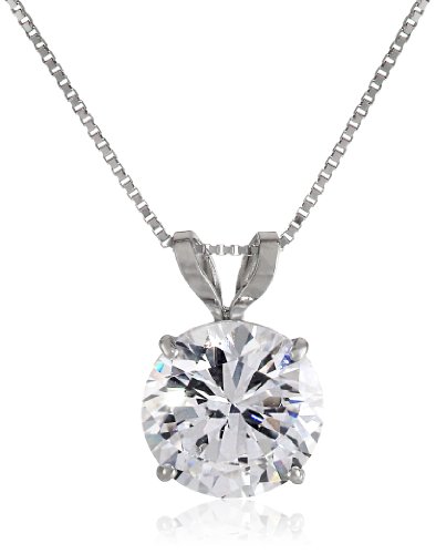 A rounded cubic zirconia stone mimics a classic diamond accessory on this solitaire pendant necklace. The stone is secured in your choice of 14k white or yellow gold and rests from an included 18-inch box chain.