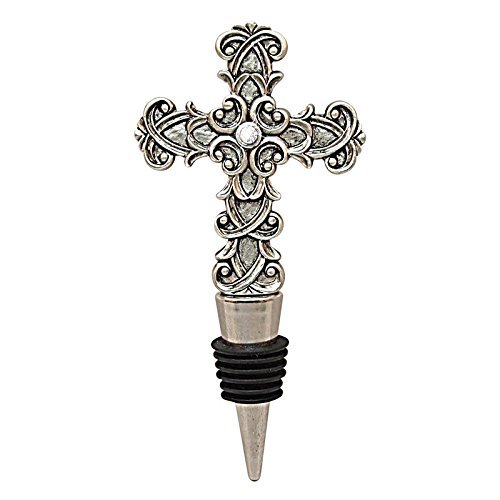 Beautiful silver toned cross wine bottle stopper with gorgeous detailing makes the perfect hostess gift.