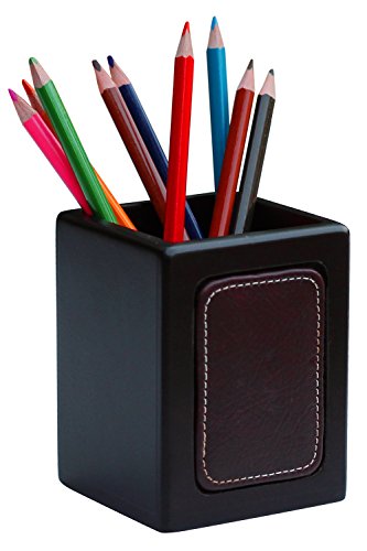 50% OFF - Leather and Wood Pen Pencil Organizer 4 inch Wooden Holder in Dark Coco Brown Color Study Table and Office Desktop Accessories