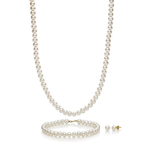 -. Title : 14k Yellow Gold Cultured Freshwater Pearl Necklace Bracelet Stud Earring Jewelry Gift Set,18"