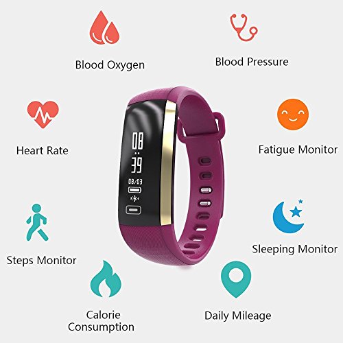 -. Title : LUCOG 0.96'' OLED Smart Bracelet Fitness Tracker, Bluetooth Blood Pressure Oxygen Heart Rate Monitor Wristband Waterproof Pedometer Calorie Counter Sleeping Activity for IOS & Android