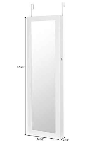 Specifications: - Color: White - Material: Real Glass, Quality MDF, Soft Velvet - Mirror Size: 43 7/8" H x 10 3/8" L (111.5 x 26.5cm) - Overall Size: 47 1/8" H x 14 3/8"W x 3.43" D (120 x 37 x 8.7cm) - Product Weight: 22lbs (10kg) - Assembly Required: No