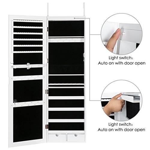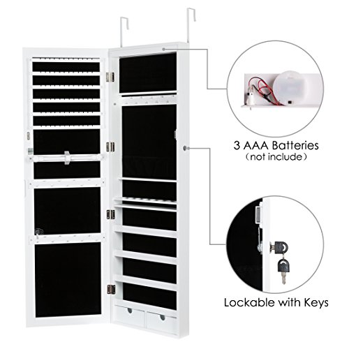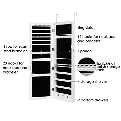 Package Contents: - 1 x Jewelry Cabinet - 2 x Door Hook - 1 x Instruction - 1 x Pack of Accessories - 1 x Silver Polishing Cloth