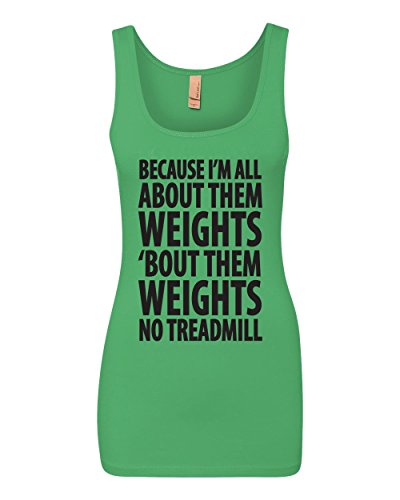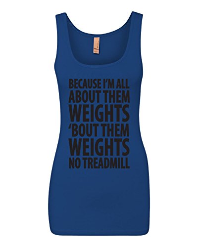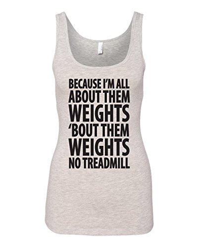Product Description Screen printed "Because Im All About Them Weights" funny work out saying on your choice of a cotton t-shirt, hoody, or tank top for men or women in ten different colors! 0