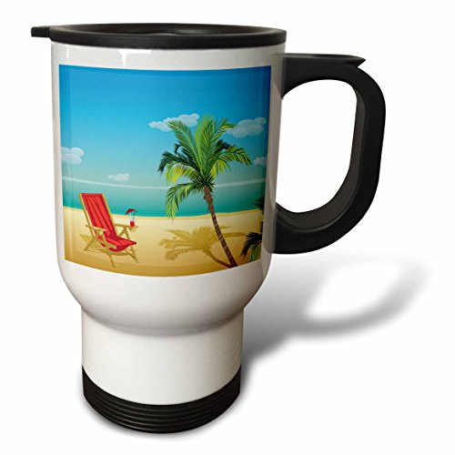 3dRose tm_152538_1 Beach Scene with a Beach Chair and Palm Tree Travel Mug, 14-Ounce, Stainless Steel
