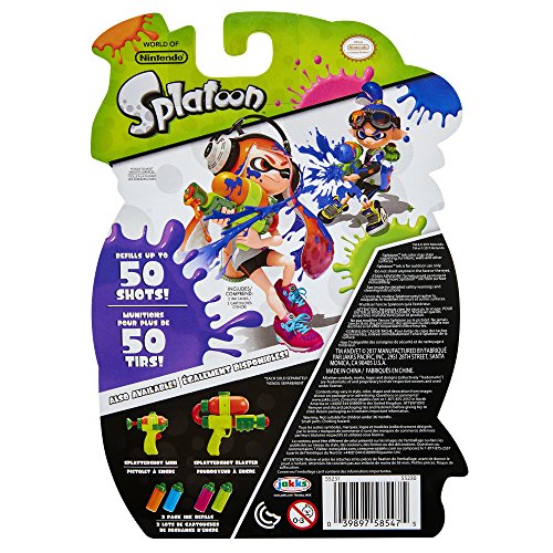 Bring the excitement of Splatoon to life with the all new Splatoon splattershot mini and Splatoon splattershot blaster! shoot targets up to 20 feet away with the washable gooey ink included in each pack! shoot up to 50 shots with each refill canister!Feature