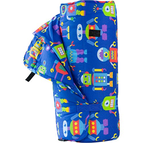 Sail off to dream-land in style with the Original Nap Mat. Wildkin nap mats provide essential comfort for nap time at home, or at preschools and daycares. Wildkin nap mats roll up for easy storage and travel, and include a shoulder strap for easy carrying. Additional features include a removable pillow, storage pocket which can be embroidered, extra-soft batting for comfort, and an attached flannel blanket for warmth. Designed to be durable and easily cared for, Wildkin nap mats are also a great starter sleeping bag for your little one.