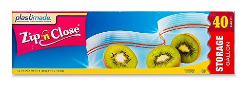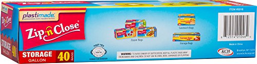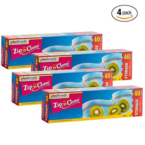 Plastimade Zip 'N Close Storage Bags Gallon, 40 Count, Pack of 4