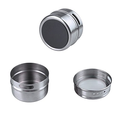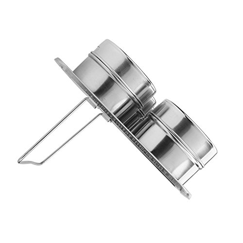 - Countertop stand included, tins can be put on the countertop stand to saving your space, also can be stuck onto a refrigerator or other steel surface by the magnetic bottom design