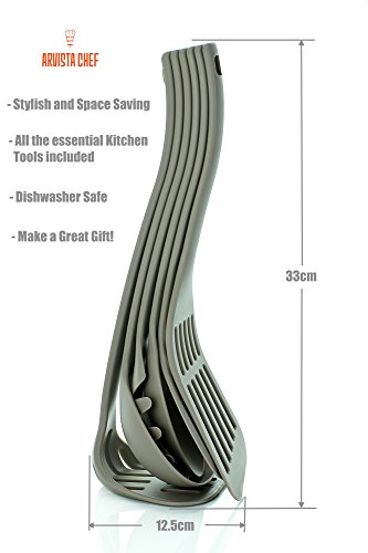 Cooking Utensils, 6 Piece Kitchen Utensil Set, Stylish Space Saving, Essential Cooking Tools, Slotted Server, Serrated Turner, Slotted Spoon, Spaghetti Server, Soup Ladle, Potato Masher.