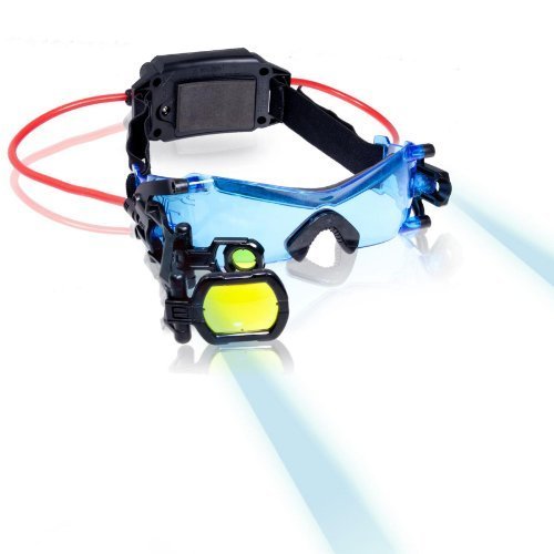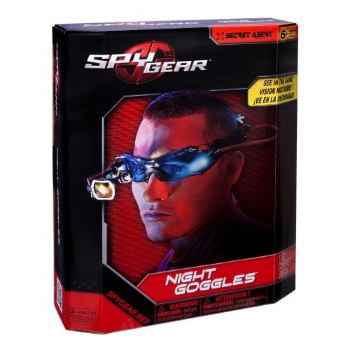 Studio : Spin Master Publisher : Spin Master Binding : Toy Product Description Spy Gear - Night Goggles Now Secret Agent's can see in the dark with Spy Gear Night Goggles! These vision-enhancing goggles use a combination of lights and lenses to deliver visibility in the darkest of conditions. Navigate at night as you're guided by blue LED light and flip out the sighting scope and 2X-magnifying lens for distant night sight. Become a real Secret Agent and gear up with the Spy Gear Night Goggles!