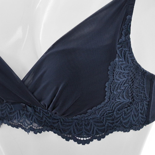 네크에 망원단을 덧대어 윗가슴을 잡아주는 3/4컵 브래지어입니다.
