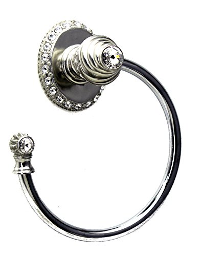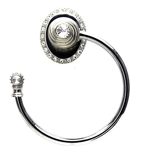 Carpe Diem Hardware 1847-24C Platinum Cache ll Large Towel Ring Left with Large Escutcheon and Swarovski Crystals