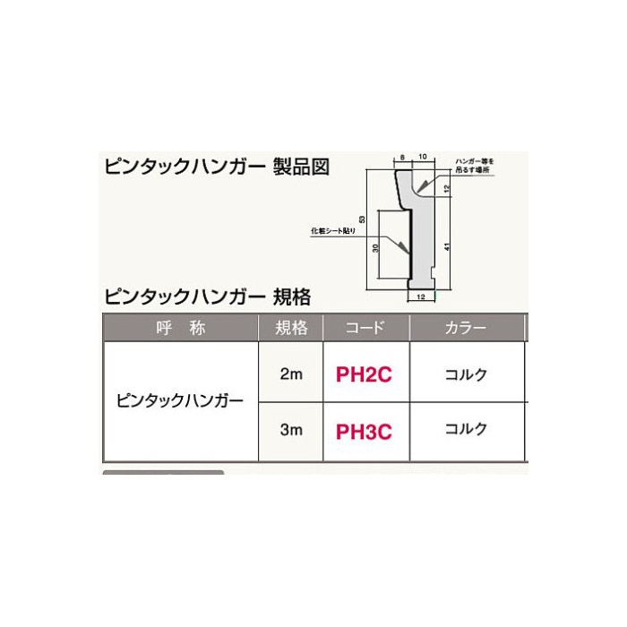 원본상품명: 【フクビ】壁付ハンガ? ピンタックハンガ?2m コルク(PH2C) 4セット