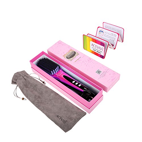 ACEVIVI고데기스트레이트 2in1브러시 마이너스 이온 꼬치형 아이런 액정 디스플레이 전열 브러시 급속 가열 온도 조절(80℃~230℃)&록