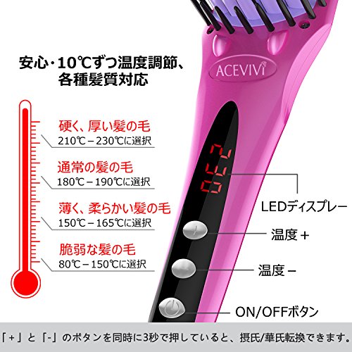 원본상품명: ACEVIVIヘアアイロン ストレト 2in1ブラシ マイナスイオン くし型アイロン 液晶ディスプレイ電熱ブラシ 急速加熱 度調節(80℃~230℃)&ロック (ピンク)