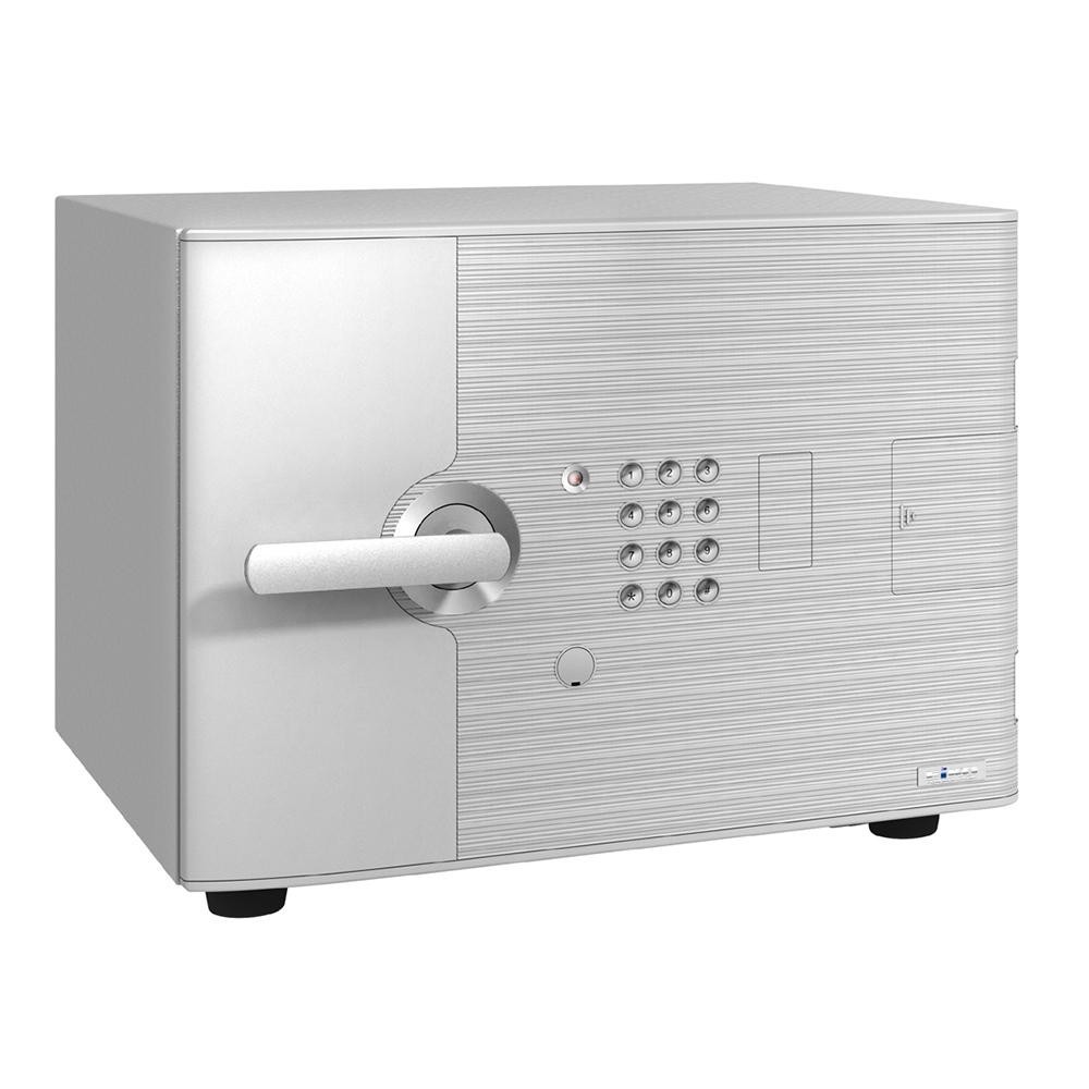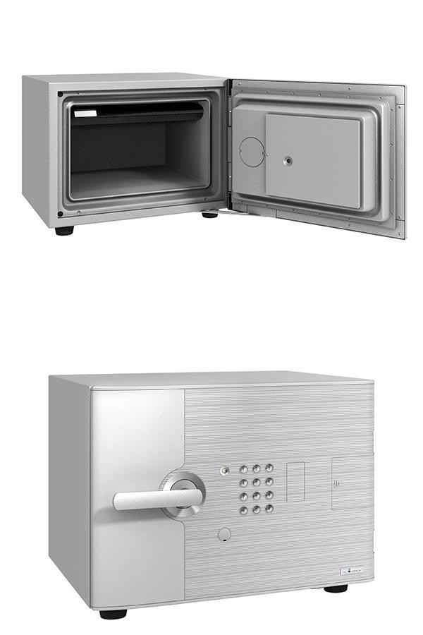テンキー式に内蔵シリンダー錠をプラス。和風・洋風どちらでもフィットする、今までの金庫とは違う顔を持つ、インテリアデザインの小型耐火金庫です。付属のトレーはA4用紙を収納できます。庫内に防水ボックス(BB-A4)を収納することも可能です。 |
