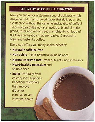 -. Feature : The number 1 brand of caffeine-free coffee alternatives / Non-acidic - helps restore alkaline balance / Antioxidants from carob, dandelion roots, dates, almonds and figs / Heart-healthy potassium and soluble fiber / Contains 10 - Tee-Bags
