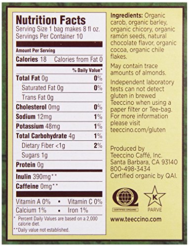-. Title : Teeccino Herbal Coffees Dandelion Dark Roast, Gluten-Free 10 count tee-bags (a)
