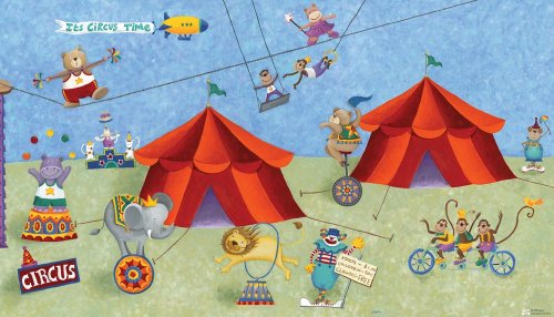 RoomMates JL1182M Big Top Circus Prepasted Chair Rail Wall Mural