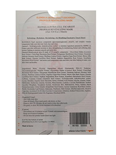 -. Title : Revtailzing Escargot (Snail) & Propolis (Vitamin) Sheet Mask by Elensilia-Intracell - for ANTI AGING / REVITALIZING / SKIN REGENERATION / BRIGHTENING - PACK of 10 Sheet Masks