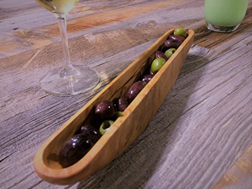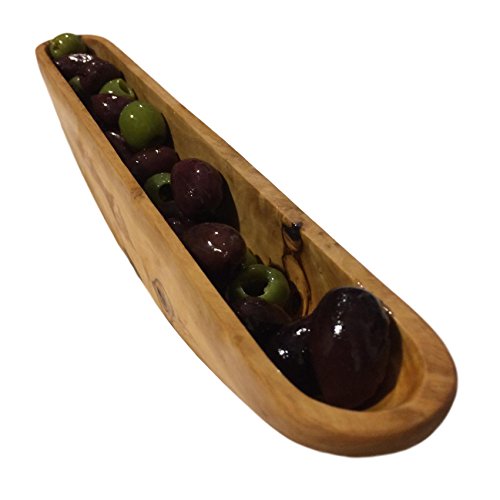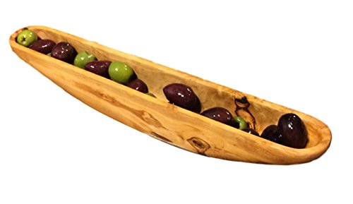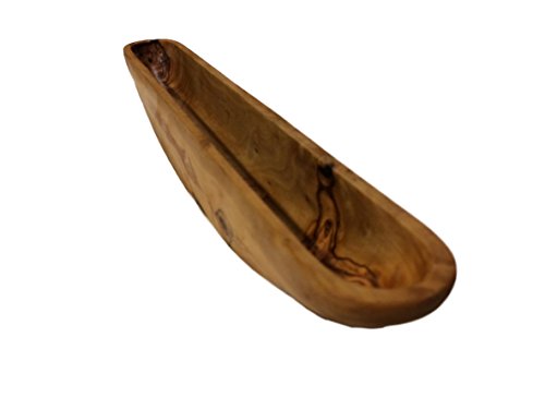 Product Description This naturally beautiful and durable rustic-style olive boat is lovingly hand-crafted from Mediterranean olive wood. Olive trees that are no longer productive are sustainably harvested for our artisanal kitchen products. Each unique piece features the striking, swirling patterns of the olive tree's twisted trunks. Olive wood is extremely hard, dense and non-porous by nature, possesses antibacterial qualities, and is resistant to odor, making it ideal for serving bowls, cutting boards, and other kitchen utensils. And the rich grains and textures of olive wood give each piece a unique and beautiful quality. 0