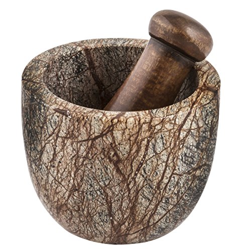 Thirstystone Mortar and Pestle Brown Forest Marble and Sheesham Wood, Multicolor
