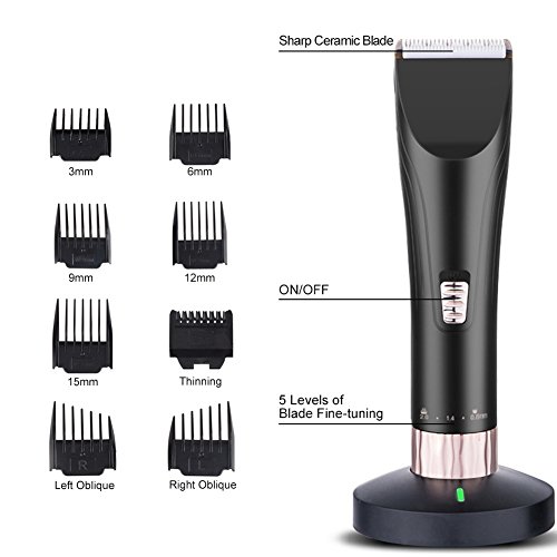 Package includes: 1x Electric Hair Clippers 2x 2000mAh Lithium Battery 1x 3mm, 6mm, 9mm, 12mm 15mm Level Comb Guides 1x charging stand 1x Cleaning Brush 1x Power Adapter 1x User Manual 0