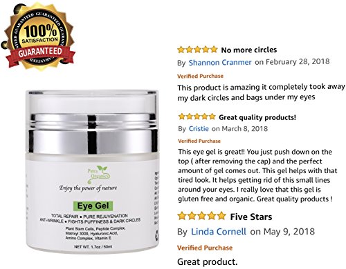 NATURAL and ORGANIC Eye Cream Gel help TREATING AND VISIBLY REDUCE Your Eye PUFFINESS, DARK CIRCLES AND Eye BAGS Under and Around Your Eyes Area.
