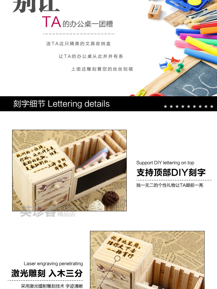 一物多用哦!笔筒里的2个木隔板可以根据自己的需要随意调整里面空间大小哦!