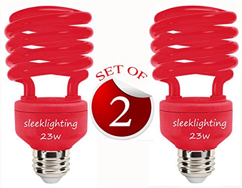 Technical Details: CFL (Compact Fluorescent) RED Spiral Light Bulbs 23 Watt (100-Watt Incandescent Equivalent) E26 medium base, 120 Volts, 8,000 hour life We sell the same bulb in 13 Watt, search asin number: B00P9IRR9A Product Description: Sleeklighting 23 Watt Colored Spiral CFL Light Bulb 120V, E26 Medium Base, RED (Pack of 2) Install this CFL bulb into your property and enjoy the many benefits of this energy-saving light fixture. It is easy to install and fits correctly with standard American screw base light bulbs. Its half spiral design adds curb appeal while the sturdy construction ensures its longevity and long-lasting functionality . 0 |