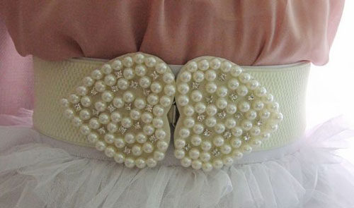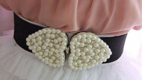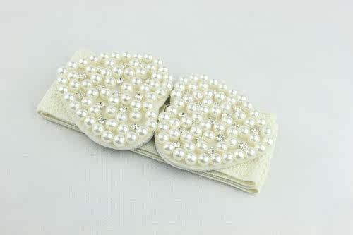 Korea quality elegant ladies hearts pearl diamond elastic wide belt decorated girdle