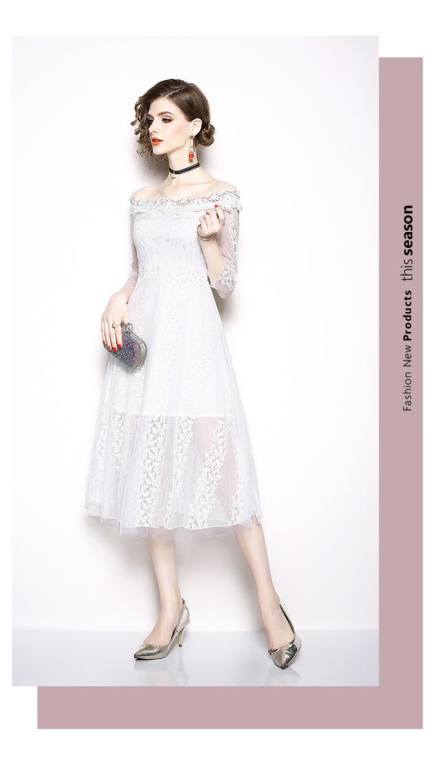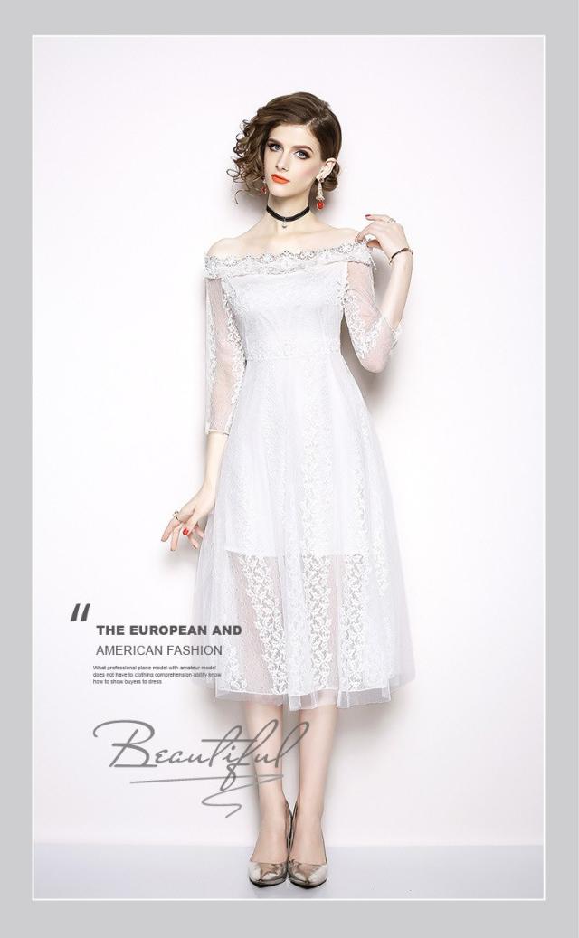 オフショルダー レース 刺繍 ドレス ワンピース パーティー 二次会 ディナー 女子会