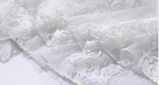 襟の刺繍レースと透け感チュールは女らしさアップ。
