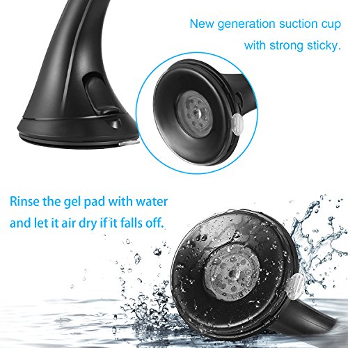 WASHTABLE STRONG STICKY GEL PAD: New generation suction cup of this mount holder with strong sticky gel adhere to windshield, dashboard and other smooth or textured surface.( NOTE: Please rinse gel suction cup with warm water and let it air dry to restore original suction strength if it falls off. )