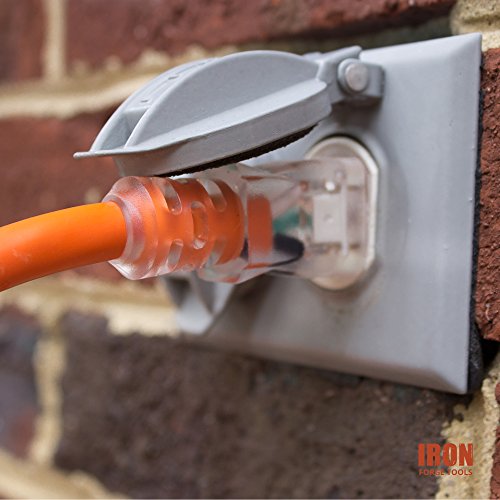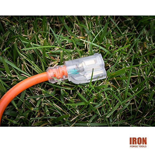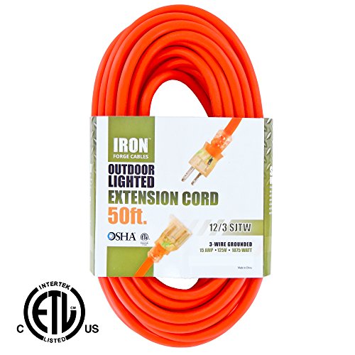 50 Ft Orange Extension Cord - 12/3 SJTW Heavy Duty Lighted Outdoor Extension Cable with 3 Prong Grounded Plug for Safety - Great for Garden & Major Appliances