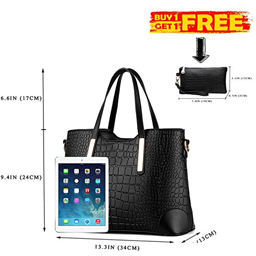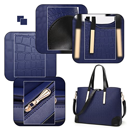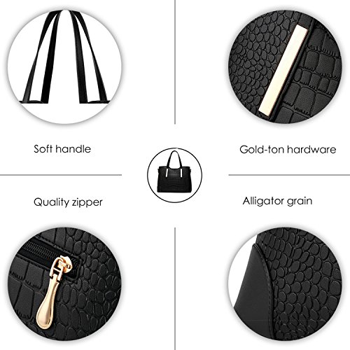 -. Brand : YNIQUE -. Department : womens -. Feature : MATERIAL: High Quality PU Leather Texture:Alligator Grain / CLOSURE: Top Zipper Closure / DIMENSIONS: 13.3"W x 9.4"H x 5.1"D, Handle Drop Length: 6.6" / POCKETS: 1 Exterior Back Zipper Pocket,2 Interior Zipper Pocket and 2 Front Wall Open Top Item Pockets / FEATURES: Gold-tone Hardware, Zip-pockets in Middle and Back, Detachable Shoulder Strap and Top-zipper Closure -. ProductGroup : Shoes -. ProductTypeName : HANDBAG -. Title : YNIQUE Women Top Handle Satchel Handbags Tote Purse Crocodile Leather Tote Bag