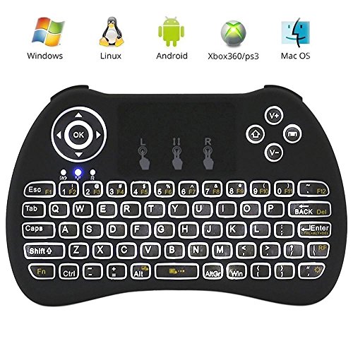 -. Feature : BOARD COMPATIBILITY: Perfect for PC, Laptop, Android TV Box, Google TV Box, IPSTB, HTPC, Projector, X-Box and Smart TV. / POWERFUL FUNCTIONS: New increased LED backlit function.3 in 1 multi-function: wireless Keyboard + mouse + touchpad,2.4G wireless connection, enjoy up to 10m operating distance. / EASY TO USE: Plug and play: no need to install software, with the USB Receiver at the back of the keyboard,Rechargeable and removable. If there is a long period of inactivity,the keyboard will automatically go into a sleep mode,the user can wake the unit up by pressing any key. / MULTITOUCH PAD: Touchpad which supports multi-finger functions. A single finger click as left mouse function, two-finger click means up and down flip , there finger at the same time as right mouse function. Easily browse the internet and play games. A perfect substitute for mouse, keeping you far away from mouse hand. / RECHARGEABLE AND REMOVABLE BATTERY: Built-in lithium-ion battery will give you over 24 hours of use and up to several weeks standby time once full charged.