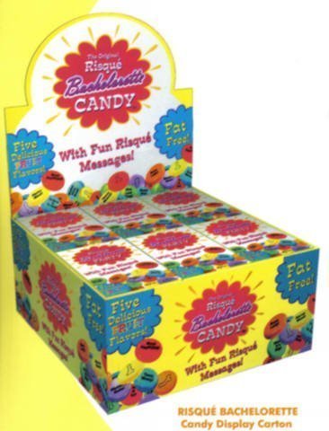 Studio : USA Publisher : USA Binding : Misc. Product Description Bachelorette candy with fun risque messages is destined to be a sure-fire winner at any bachelorette party. 24 handsome boxes are presented in an attractive eye-catching pop-up display carton. Each piece of assorted candy contains a risque message or design of her favorite male body part. 24 - 2.25 ounce boxes 0