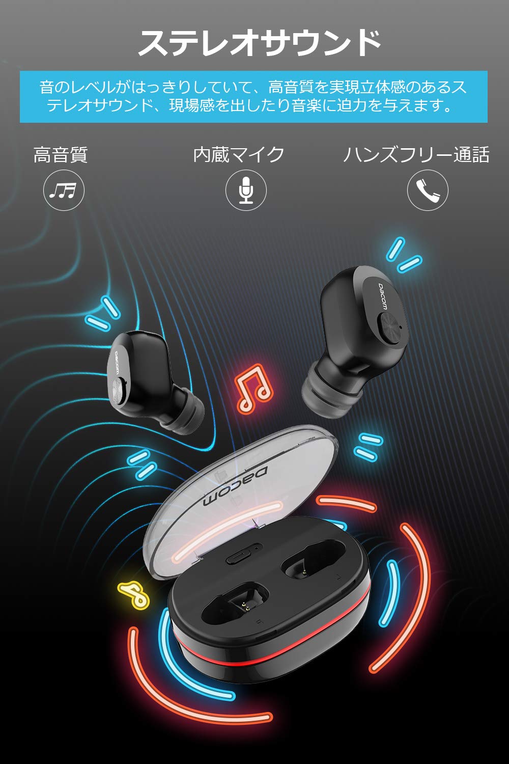 ✔【ステレオ音質&左右分離型】最新チップを採用して、どの音域でもバランス良くクリアで高品質なサウンドを楽しめます。音楽や映画などの様々なサウンドを、本格的な響きであなたの耳に届けます。また左右分離のデザインで、片耳でも両耳でも、使い勝手、他人と別々使用も可能、伝統的なイヤホンの固い使用感覚から完全に解放。【片耳】ドライブ、ウォーキング、デスクワーク、作業中、電話会議、様々なシーンで使用可能。【両耳】ケーブルが邪魔になることもありません、恋人や友達と一緒に音楽を楽しめます。★注意点:両耳使用する場合、電話を出る時、片耳だけ音を出るので、ご注意ください。