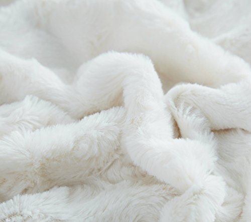 Elegant and luxurious solid white faux fur throw blanket with a lovely soft texture on one side and extremely warm and comforting sherpa back side.