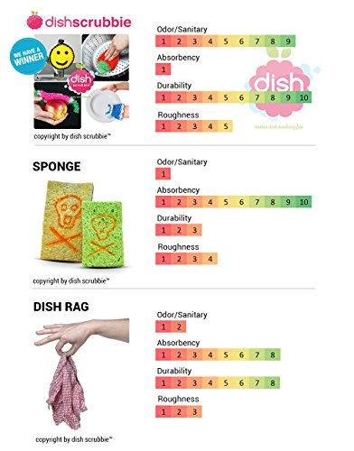 - Feature : ✓ DURABLE: One Dish Sponge Scrubber lasts longer than Kitchen Washcloths, Dish Cloths or Sponges; Each Dish Sponge Scrubber has two layers for extra strength and durability. / ✓ 100% NON SCRATCH: No scratch guaranteed. Use the dish sponge on all surfaces. Won't scratch chrome, copper, stainless steel, anodized surfaces, non-stick cookware, glass, crystal, porcelain, china and ceramics. / ✓ LOW MAINTENANCE: Each Dish Scrubbie is dishwasher and washing machine safe. Sanitary replacement to dish cloths, dish rag, sponges or washcloth. No odor or mildew smells. / ✓ NO ODORS: No more smelly dish rags, sponges, scrubbing pads or dishcloths. Quick drying and non absorbent material prevents foul odors due to bacteria growth. / ✓ FOOD RINSES OUT EASILY: Our dish rags scrubber rinses easily. Even eggs and cheese wash out easily.