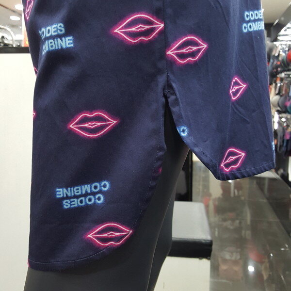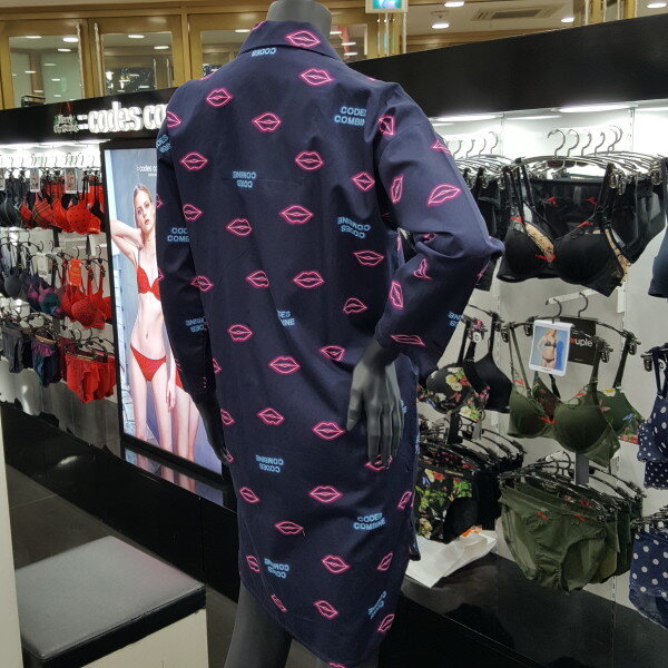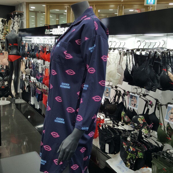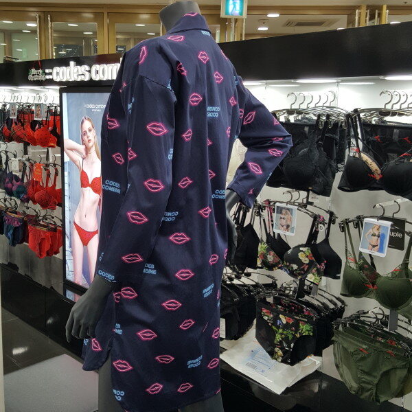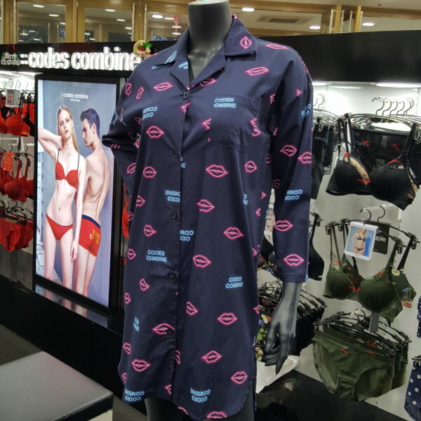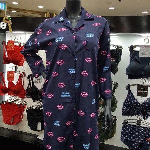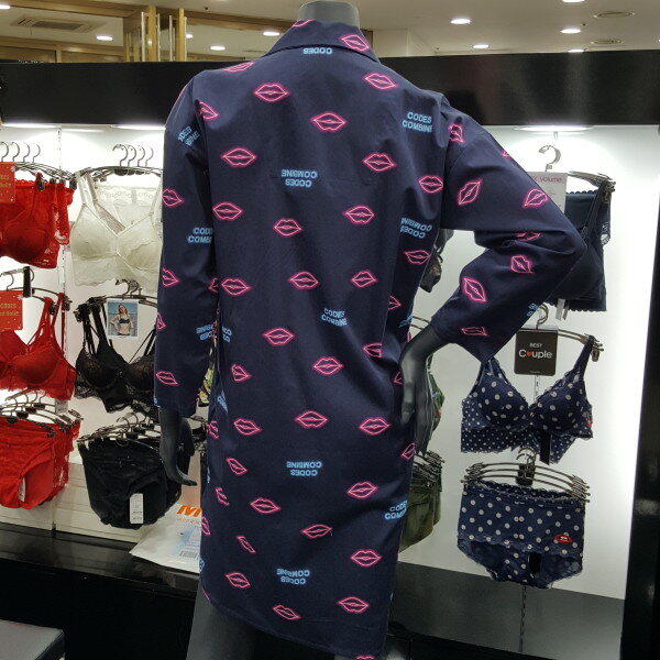 네이비 색상에 입술 패턴의 코데즈 컴바인 면 여성 원피스 잠옷 입니다. 카라 형태의 디자인으로 깔끔하고 포켓으로 포인트를 준 제품 입니다. 긴 소매로 봄,가을,겨울 착용이 가능 합니다