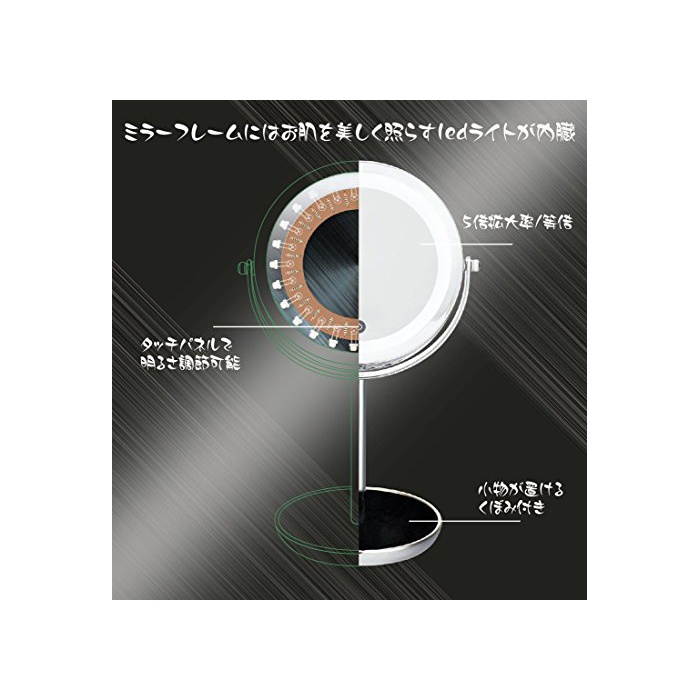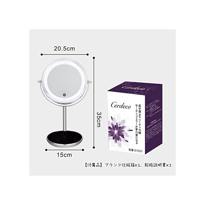 원본상품명: (セ?ディコ)Cerdeco 北?風卓上鏡 タッチパネル調光 くぼみ付き ??の?面鏡DX 5倍?大鏡+等倍鏡 LEDライト付き ?面化粧鏡 鏡面φ175mm D702T