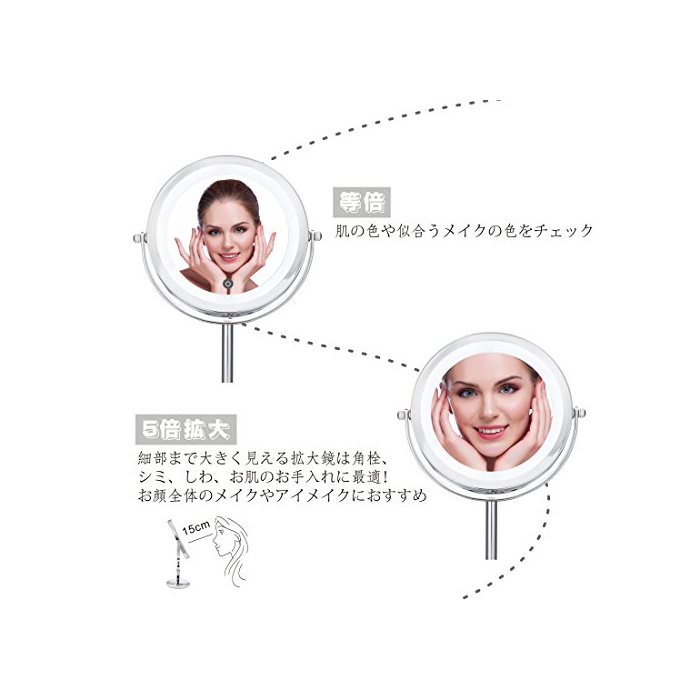 【규격】사이즈:20.5*15*35cm 【부속품】브랜드 화장품 상자*1,취급 설명서*1 【소재】 철×밀러(5배&등배)×17발의 고휘도LED 【컬러】실버